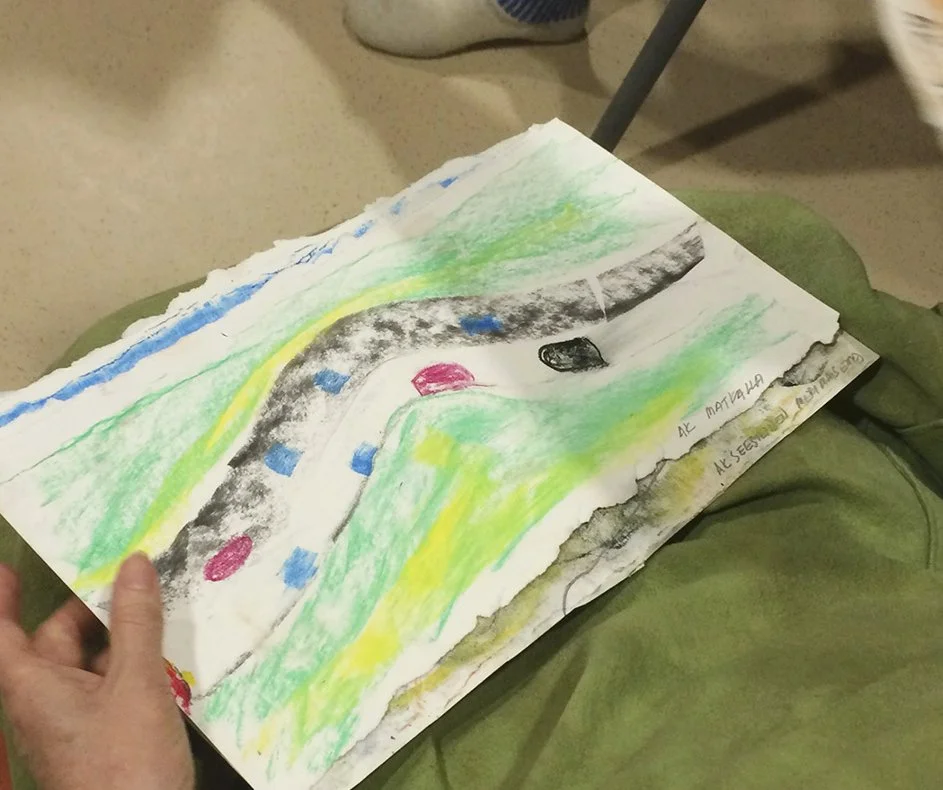 Sitten ohjasimme taideryhmäläiset piirtämään tai maalaamaan aiheesta